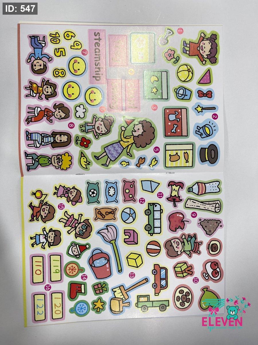 يدور الكتاب حول الحياة والأنشطة في روضة الأطفال، مع التركيز على اللعب والمناسبات الجماعية.يحتوي ع 80 ملصقآ